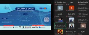 In his opening address, Prof. Ts. Dr. Osman Ghazali urged participants to embrace DigiHAZ as a call to action: “Think boldly, act responsibly, and innovate for a safer tomorrow.” The programme featured a keynote lecture by Prof. Dr. İsmail Rakıp Karaş (Karabuk University, Türkiye) on 3D GIS Solutions for Indoor Disaster, nine research paper presentations covering topics such as landslide mapping, flood and drought risk assessment, groundwater vulnerability, and geomatics education, as well as a hands-on workshop on Urban Heat Mapping with Google Earth Engine conducted by Gs. Dr. Nur Suhaili Mansor (UUM).