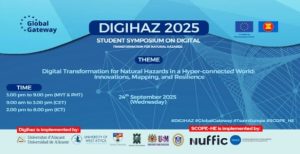 Organised by the School of Computing, Universiti Utara Malaysia (UUM), the virtual symposium gathered students, researchers, and experts to explore how digital technologies can enhance disaster resilience. Held under the theme “Digital Transformation for Natural Hazards in a Hyper-connected World”, the event was supported by the EU–ASEAN SCOPE-HE programme and funded by the European Union through the Global Gateway initiative, with institutional partners from Spain, the Netherlands, and Germany.