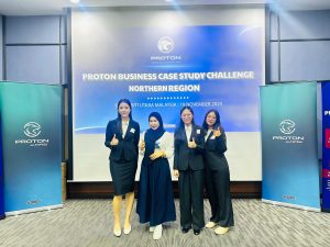 SINTOK, 19 November 2025: Empat pelajar dari Universiti Utara Malaysia (UUM) iaitu Cheah Ka Ying dan Wong Jing Ru pelajar dari Pusat Pengajian Ekonomi, Kewangan dan Perbankan (SEFB), Ooi Xin Rhu dan Lee Teng Fang dari Pusat Pengajian Sains Kuantitatif (SQS) telah membuktikan keupayaan mereka apabila berjaya meraih tempat pertama dalam PROTON Business Case Study Challenge 2025, sebuah pertandingan berprestij yang menghimpunkan pelajar dari empat universiti utama di wilayah utara.
