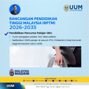 SINTOK – Kerajaan Malaysia melakar sejarah baharu dalam landskap pendidikan tinggi negara apabila YAB Perdana Menteri, Datuk Seri Anwar Ibrahim, mengumumkan inisiatif Pendidikan Percuma bagi Mahasiswa Orang Kurang Upaya (OKU) bermula tahun ini.