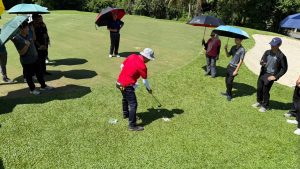 Mr. Yeoh turut mengadakan demonstrasi di putting green bagi meningkatkan kefahaman dan keupayaan peserta untuk menilai serta mengendalikan situasi di padang golf dengan mematuhi peraturan yang betul.