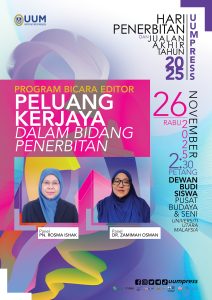 SINTOK, 23 November 2025: UUM Press akan menganjurkan Program Hari Penerbitan dan Jualan Akhir Tahun 2025 pada 26 dan 27 November ini di dua lokasi iaitu Varsity Mall dan Dewan Budi Siswa, Pusat Budaya dan Seni.