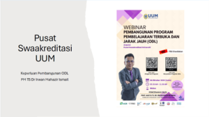 Timbalan Pengarah Pusat Swaakreditasi, Prof. Madya Ts. Dr. Irwan Mahazir Ismail berkata, penganjuran webinar ini bertujuan membantu pelaksanaan program ODL di UUM agar berjalan dengan lancar.