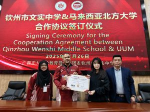 CHINA, 25 January 2026: As part of the Wisdom Without Borders (WWB): Malaysia–China Academic Networking Programme (22–28 November 2025), a delegation from the School of Education (SOE), Universiti Utara Malaysia (UUM), with the support of the Awang Had Salleh Graduate School of Arts and Sciences (AHSGS), undertook a strategic visit to Qinzhou Wenshi Middle School. The visit marked a significant milestone in strengthening school–university collaboration and advancing cross-border educational engagement.