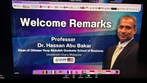Supporting them were eight COB academicians who served as commentators and reviewers, providing expert critiques and valuable mentorship that elevated the overall quality of presentations and discussions. The distinguished panel comprised Professor Dr. Salniza Md Salleh, Associate Professor Dr. Indraah Kolandaisamy, Dr. Aminullah Abdulrasheed Abdullah, Dr. Mohd Hadafi Sahdan, Dr. Safwan Marwin, Dr. Hafiz Waqas Ahmed Ansari, Dr. Zeittey Karmilla Kaman, and Dr. Mohamad Hanif Abu Hassan. Their active participation reflected OYAGSB’s academic depth and its pivotal role in nurturing emerging scholars within and beyond UUM.