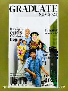 “Kajian saya adalah replikasi kajian Dr. Azizah di United Kingdom, tetapi disesuaikan untuk konteks Malaysia, bagi membantu kaunseling kesihatan mental kanak-kanak dan remaja melalui seni dan ekspresi tubuh. Graduasi pada 10 November lalu bukan penamat, tetapi satu permulaan baharu untuk terus menghubungkan ilmu dari Sintok ke seluruh Malaysia dan ke pentas global,” katanya.