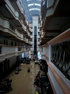 “Hujan juga masih turun dan banyak kawasan yang dinaiki air, malah banjir sudah memasuki kawasan hotel kami. Syukur kerana kami semua berada di aras lima tetapi kawasan di luar hotel sudah dinaiki air dan tiada kenderaan ringan boleh melalui jalan di sini,” katanya ketika dihubungi di sini, semalam.