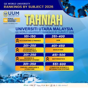 UUM ONLINE – Universiti Utara Malaysia (UUM) continues to strengthen its standing on the international stage in the field of Accounting and Finance, rising to the 101–150 band in the QS World University Rankings by Subject 2026, an improvement from the 151–200 band in the previous edition.